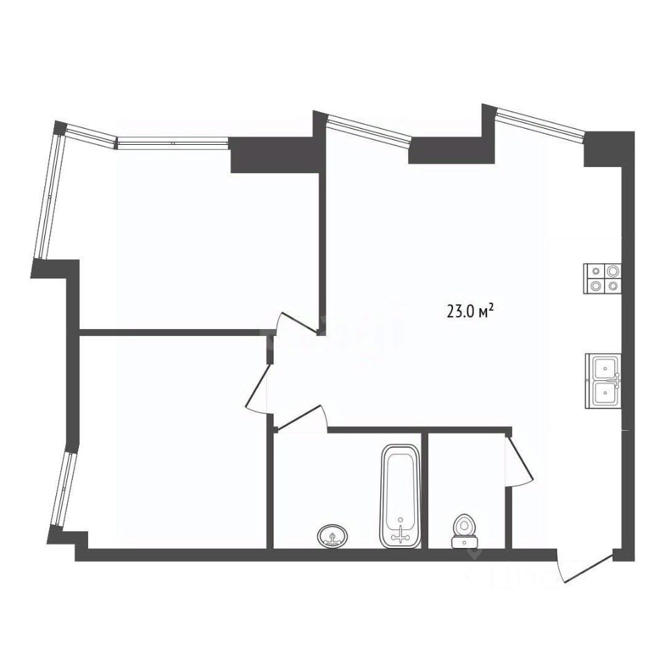 Планировка: Изолированные комнаты, кухня-гостиная 23 м².