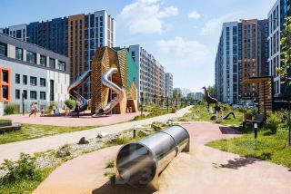 Во дворах-парках, закрытых от машин, комфортно и безопасно гулять. Здесь высажены уже взрослые деревья, которые создают прохладную тень в жаркий день.