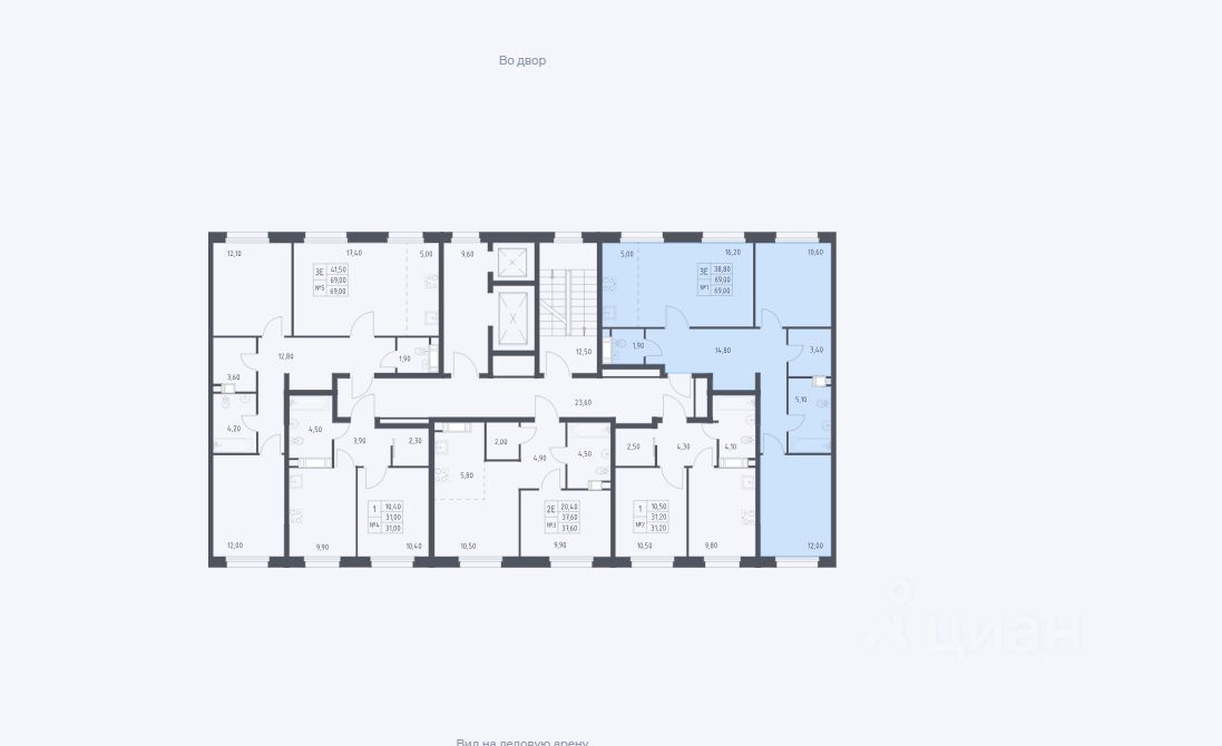 Общая площадь68,8 м²