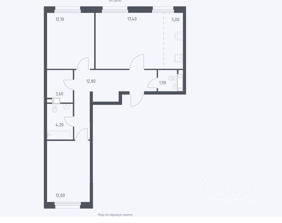 Квартира без отделки. Доступность опции "отделка" и возможность комплектации мебелью и декором уточняйте у застройщика.