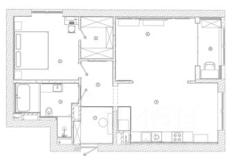 Функциональная планировка квартиры: просторная кухня, большая гостиная с двумя окнами и отдельная спальня. Совмещенный санузел. Вместительная гардеробная. Высокие потолки и большие оконные проемы создают ощущение большого и светлого пространства.