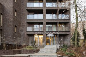 В состав жилого комплекса входит два камерных малоэтажных клубных дома, соединенных переходом. Фасады облицованы юрским мрамором молочного цвета и полнотелым керамическим кирпичом ручной формовки цвета темный шоколад.