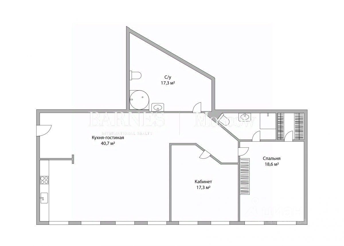 В квартире выполнена отделка по авторскому проекту. Планировочным решением предусмотрены: просторная кухня-гостиная, спальня, кабинет (спальня или детская), гардеробная, 2 санузла.