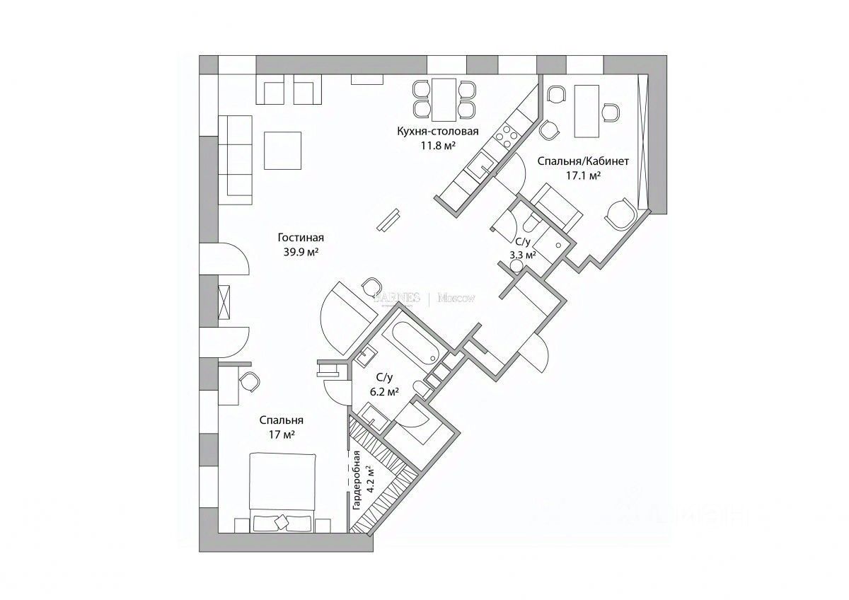 Просторная 3-комнатная квартира площадью 122.5 кв.м. в клубном доме с подземным паркингом.