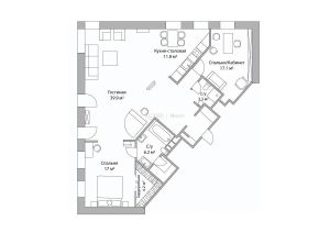 В квартире выполнена авторская отделка в современном стиле. Функциональное планировочное решение: просторная гостиная с зонами столовой и кухни, спальня с гардеробной, вторая спальня-кабинет, 2 санузла, балкон.