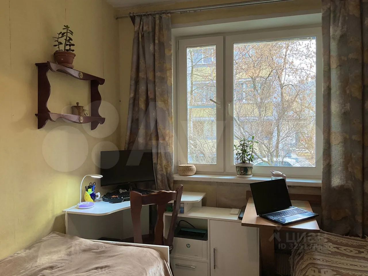 Комната 2 — площадь 11.5 кв.м., окна на улицу, с торца здания.