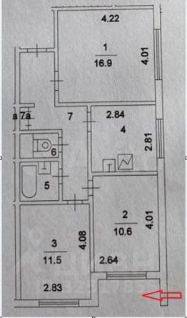 Комната 3 — площадь 10.5 кв.м., окна на улицу, с торца здания.