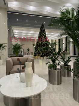 *Премиальные входные группы с высотой потолка 8 метров, искуственным водопадом, коворкингом и шикарной елкой) Лобби с уникальной архитектурой и мебелью на заказ в Вашем распоряжении ка место для отдыха и ожидания гостей