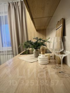 Прямо — уютная полноценная кухня. Она оснащена хорошим кухонным гарнитуром, обеденным столом со стульями и всей техникой Bosch: духовкой, варочной панелью и посудомоечной машиной, новым встроеным холодильником.