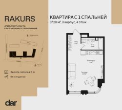 Продаётся 1-комнатная квартира 37.20 м² в жилом комплексе Ракурс. Квартиру отличают панорамное остекление, потолки [ceiling_height] м, улучшенная шумо и воздухоизоляция. Дом сдаётся в 1 квартале 2028 года, продажи проходят через эскроусчета. Подземный паркинг, коворкинг, закрытая благоустроенная территория с фонтаном и артобъектами. Гибкие условия покупки.