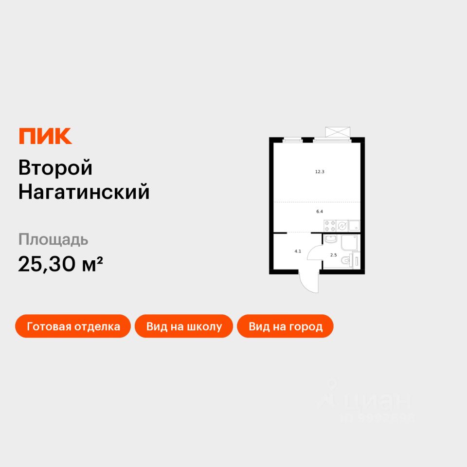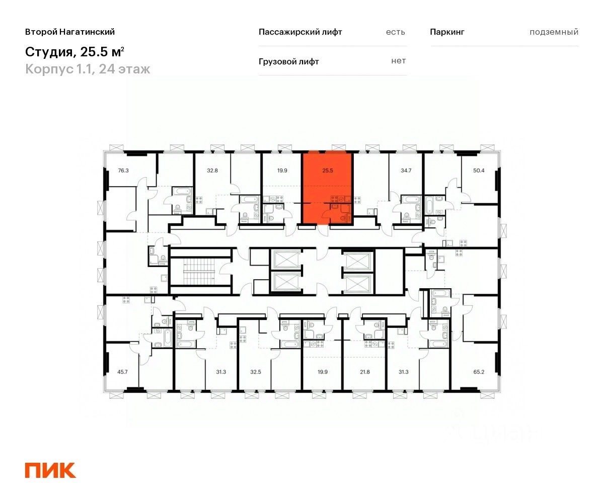 Продаётся квартира-студия площадью 25,3 кв.м на 24 этаже 33 этажного дома (Корпус 1.1, Секция 1) проекта ПИК Второй Нагатинский. Светлый просторный подъезд на уровне земли, функциональная планировка, большие окна, c отделкой.
