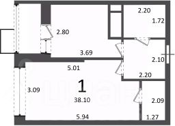 1-комн. кв., 38,1 кв.м