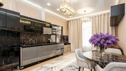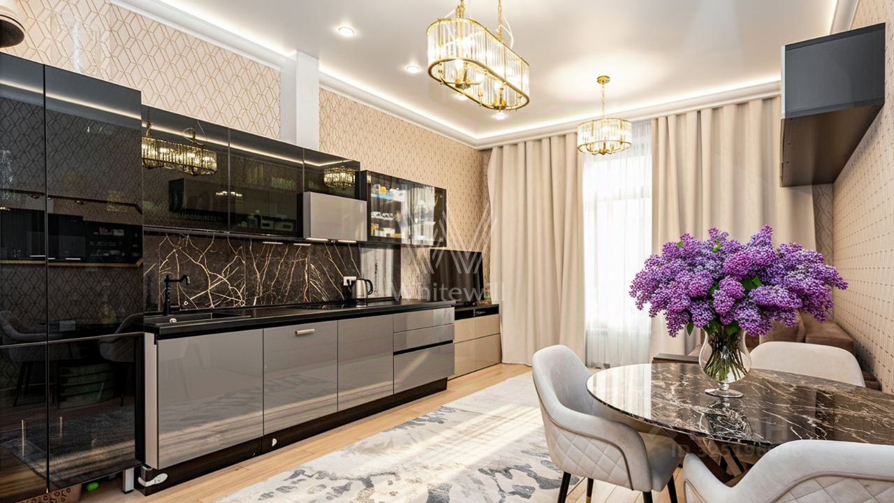 Квартира с 1 спальней общей площадью 63 м² в комплексе премиум-класса "Суббота" на 3 этаже. Выполнена дизайнерская отделка в стиле современной классики. Продуманы различные сценарии освещения, в том числе подсветка потолков. Квартира полностью меблирована и укомплектована всей необходимой бытовой техникой.