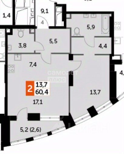 Арт. 127981248 Продаётся 2-комнатная квартира 60,4 м² в ЖК "Sydney City" (корпус 2.2, секция 4). Для клиентов Прайм Самолет Плюс, действует уникальное торговое предложение по приобретению данной квартиры в ипотеку, по ставке 12,25%.
