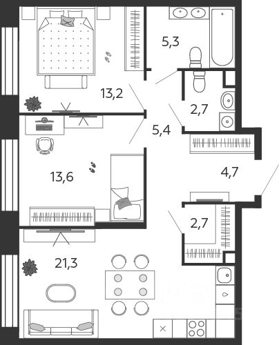 Продаётся 2-комнатная квартира в строящемся доме (Корпус 4.1 (2 очередь 1 этап)), срок сдачи: IV-кв. 2025, общей площадью 68.9 кв.м., на 12 этаже. Это город в городе, который не подстраивается под старые рамки, а задает новую планку и стандарт жилого района в России.