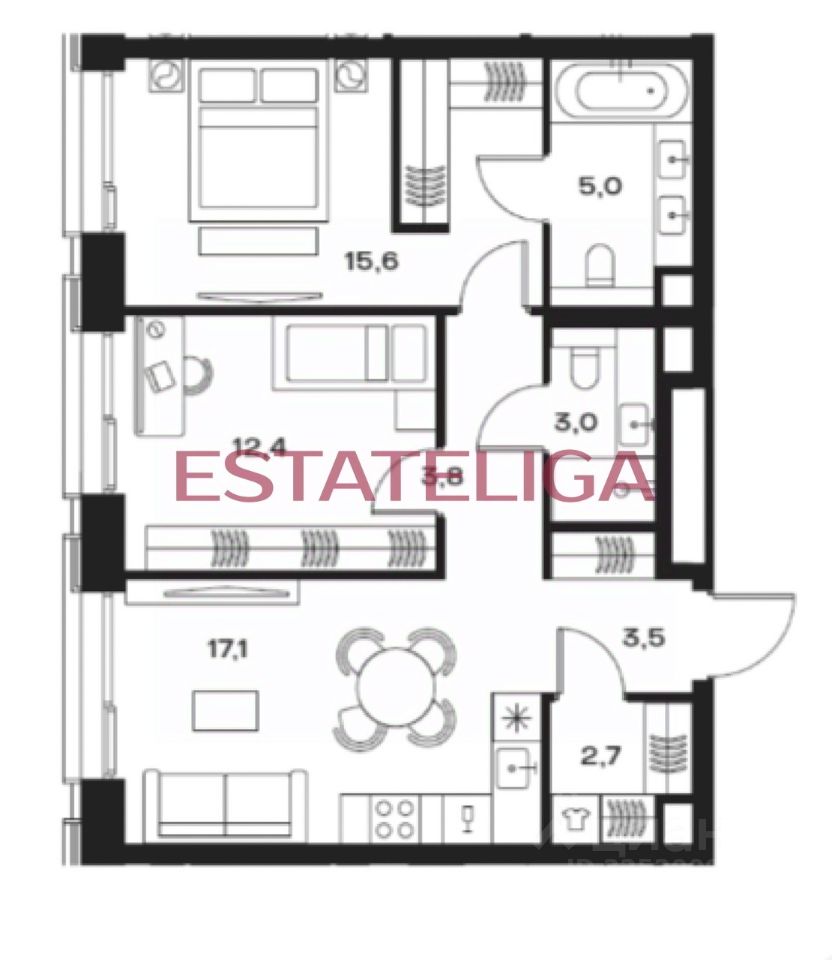 Двушка в современном жилом комплексе с британской архитектурой и благоустройством.