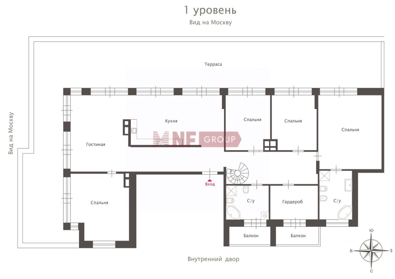 Особенность объекта — просторная терраса площадью 57 м² с панорамным видом на центр Москвы.