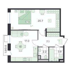 Продаётся 2-комнатная квартира в строящемся доме (Театральный, к2), срок сдачи: II-кв. 2026, общей площадью 51.3 кв.м., на 3 этаже. Бутик-квартал "G3 Театральный"