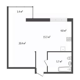 В перспективе можно легко провести дизайнерское зонирование для полноценной двухкомнатной квартиры евро формата.