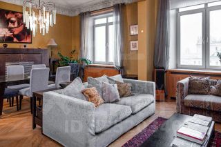 94 метра тихой роскоши - гостиная 18 кв.м., кухня-столовая 23 кв.м., спальня 18,5 кв.м., кабинет или детская 8 кв.м., два санузла, гардеробная комната. Классический ремонт вне времени: штучный дубовый паркет, двери и мебель из массива, во влажных зонах отделка натуральным мрамором, деревянные стеклопакеты и конечно же бережно отреставрированная историческая лепнина. Высота потолков 3,4 метра, что придает пространству такой необходимый в современной жизни объем.