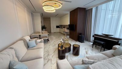 Апартаменты расположены на 51-м этаже современного 68-этажного дома, обеспечивая великолепные виды на город. Высокие потолки в 3,5 метра добавляют ощущение простора и свободы.