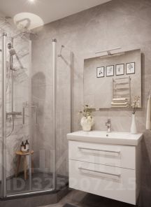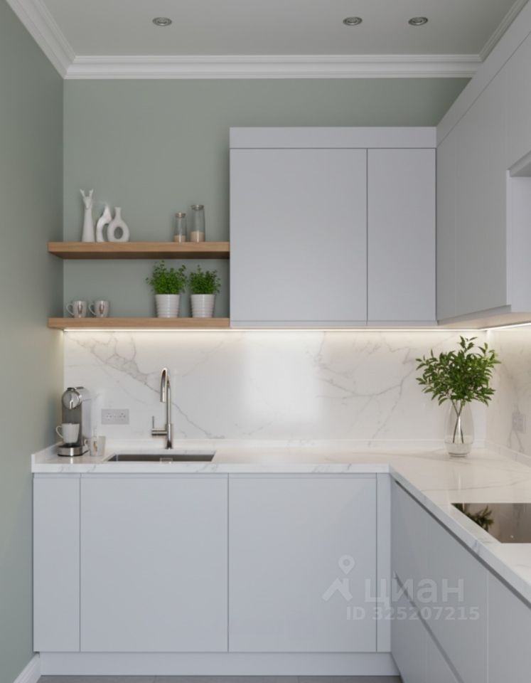 Планировка: кухня-гостиная, две спальни, гардеробная, два санузла.