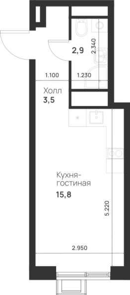 Студия, 22,2 м²