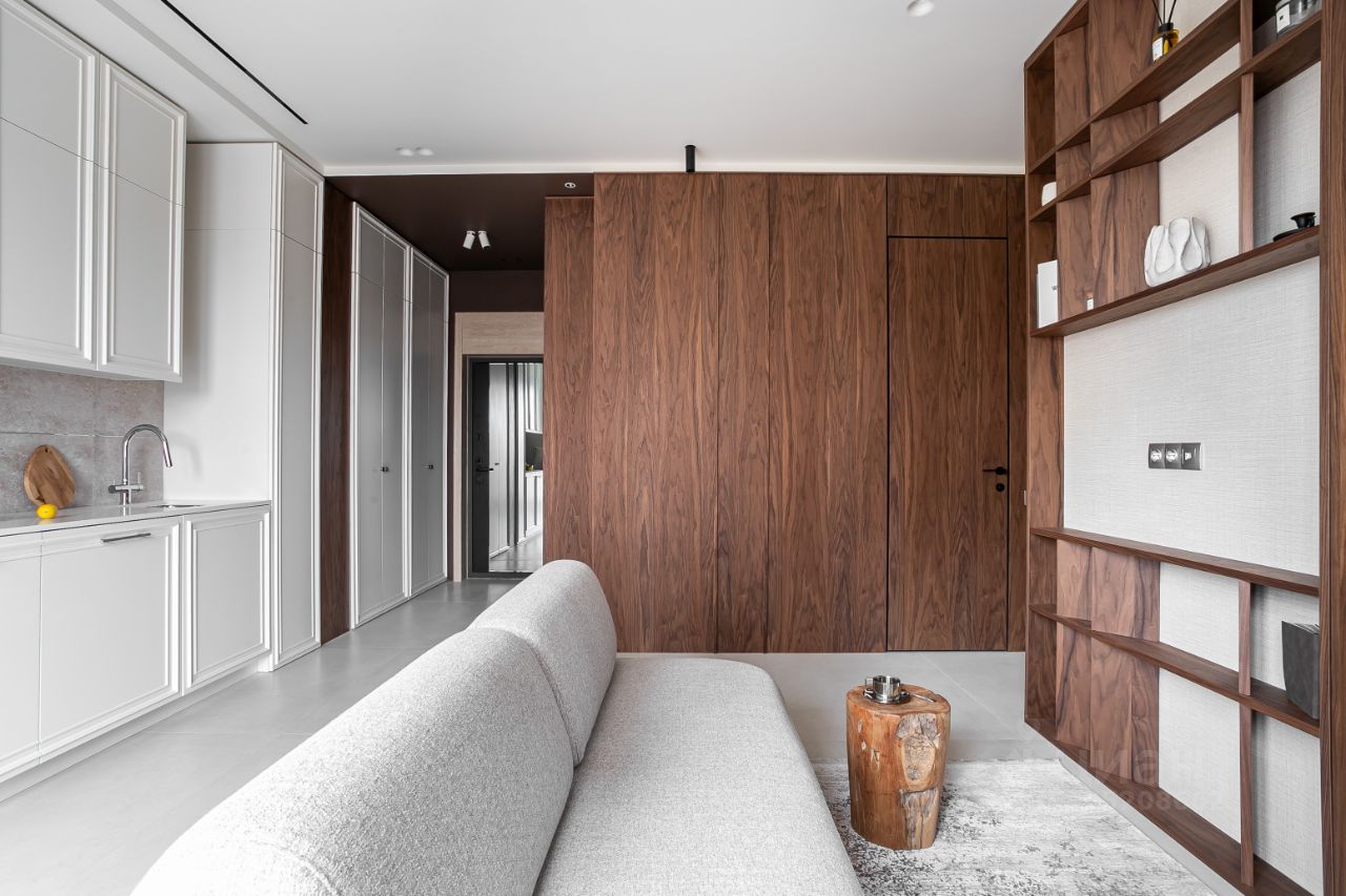 Проект создавали для себя (не инвест), с использованием современных материалов ведущих производителей. НАТУРАЛЬНЫЙ шпон американского ореха, скрытые двери увеличенной высоты, керамогранит PORCELANOSA (Испания), натуральный травертин, дорогое освещение с множеством сценариев света: CENTRSVET, MAYTONI, кухня премиум класса с фасадами в эмали и фурнитурой и системами BLUM, столешница из кварцевого камня, дизайнерская мебель под заказ.