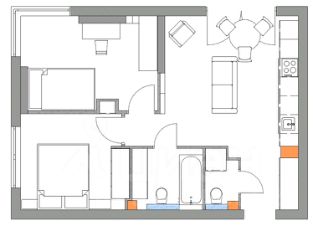 Двухкомнатная квартира (евро-3) площадью 52 кв.м с эргономичной планировкой, где все продумано до мелочей!
