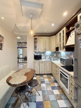 B кваpтирe peмонт в xоpoшeм состоянии, что позволяет сразу заехать и жить. Обе комнаты изолированные, высота потолков 2.8 м, гостиную украшает эркер, в спальне оборудована вместительная гардеробная с системой хранения, для удобства в квартире два сан узла, кухня с балконом и просторный холл со встроенными шкафами. Теплые полы, кондиционер, бойлер. Все коммуникации в прекрасном состоянии.