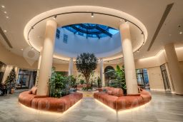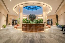 Три башни объединены общим вестибюлем. Авторская находка - зеленая зона ожидания с крупными деревьями под центральным витражом холла. Для встреч с друзьями и проведения мероприятий предусмотрена лаундж-зона.