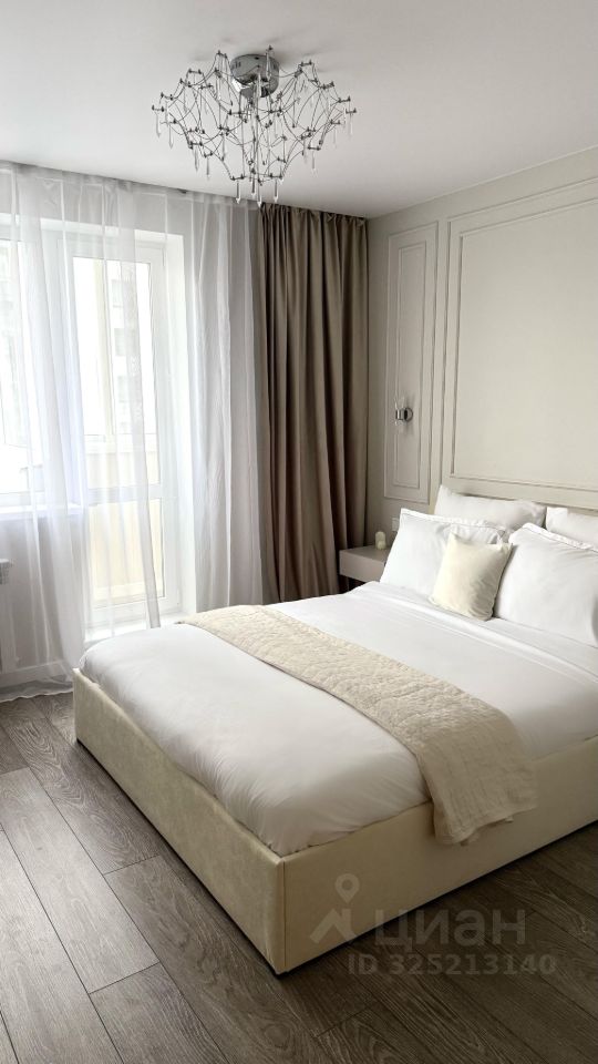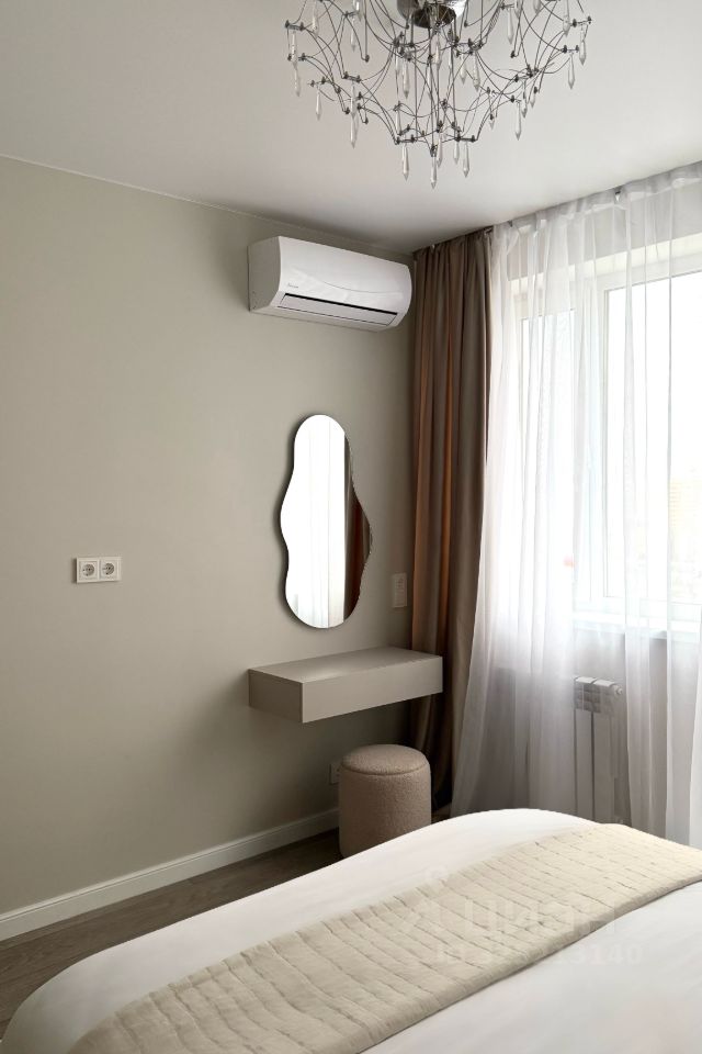 - в спальне двухспальная кровать с прикроватными тумбами, туалетный столик с подсветкой зеркала, кондиционер, просторная гардеробная. Из спальни есть выход на балкон;