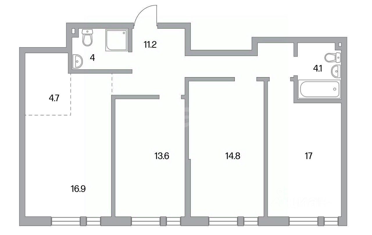 ЖК Тринити. Продается 3-х комнатная квартира по переуступке, с большой кухней 21,6 м.кв., для большой семьи или любителей проводить время со своими друзьями. Три полноценные спальни.