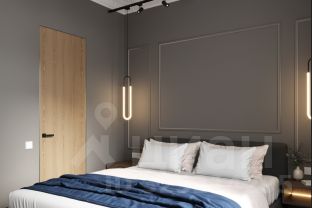 Планировка: кухня-гостиная, спальня, гардеробная, санузел.
