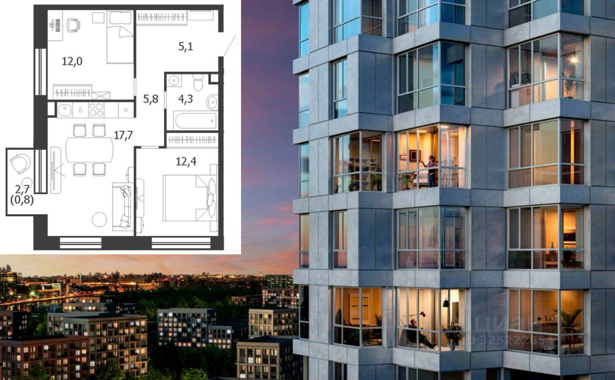 Вашему вниманию - великолепная квартира с двумя спальнями и просторной кухней-гостиной с балконом. Общая площадь 57.3 кв м. Кухня-гостиная 17.7кв.м, два окна! Угловая!