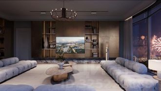 - Терраса на свежем воздухе в окружении парка с зонами отдыха, барбекю, открытым огнем, уличными каминами, кинотеатром, ряд шезлонгов и джакузи.