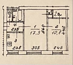 2 комн. квартира в кирпичном ведомственном доме поздней сталинской архитектуры, 1958 г.п., индивидуальный проект.