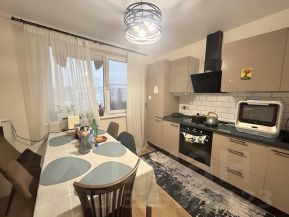 В квартире сделан современный евроремонт. Просторная жилая площадь составляет 48 кв. м, кухня — 10.5 кв. м, что позволяет комфортно разместиться всей семьей. Высокие потолки (2.70м) создают ощущение простора. В квартире есть один совмещенный санузел и два балкона с видом на улицу и во двор. Все комнаты обставлены необходимой мебелью и оборудованы современной техникой.