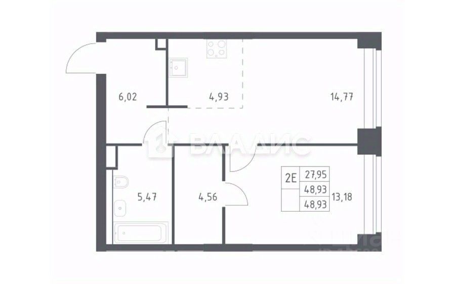 - Общая площадь: 48,93 кв. м.