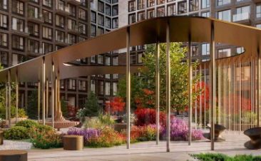 Инфраструктура: На благоустроенной территории комплекса площадью 5 га размещены современные детские и спортивные площадки, зоны отдыха с шезлонгами, фонтан и зона коворкинга.