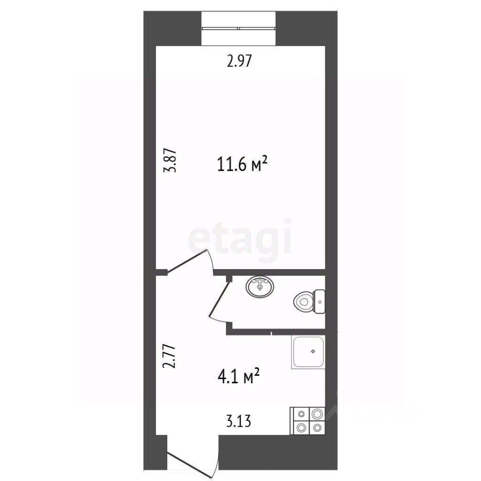 Продается жилая однокомнатная квартира общей площадью 17,1 кв. м на высоком первом этаже.
