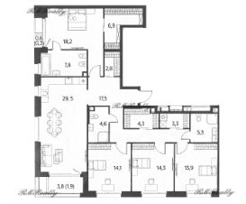 Великолепная продуманная планировка: просторная кухня, гостиная с лоджией, мастер спальня со своей гардеробной и ванной с окном, 3 детских комнаты со своим санузлом, гостевой санузел, постирочная, несколько гардеробных.