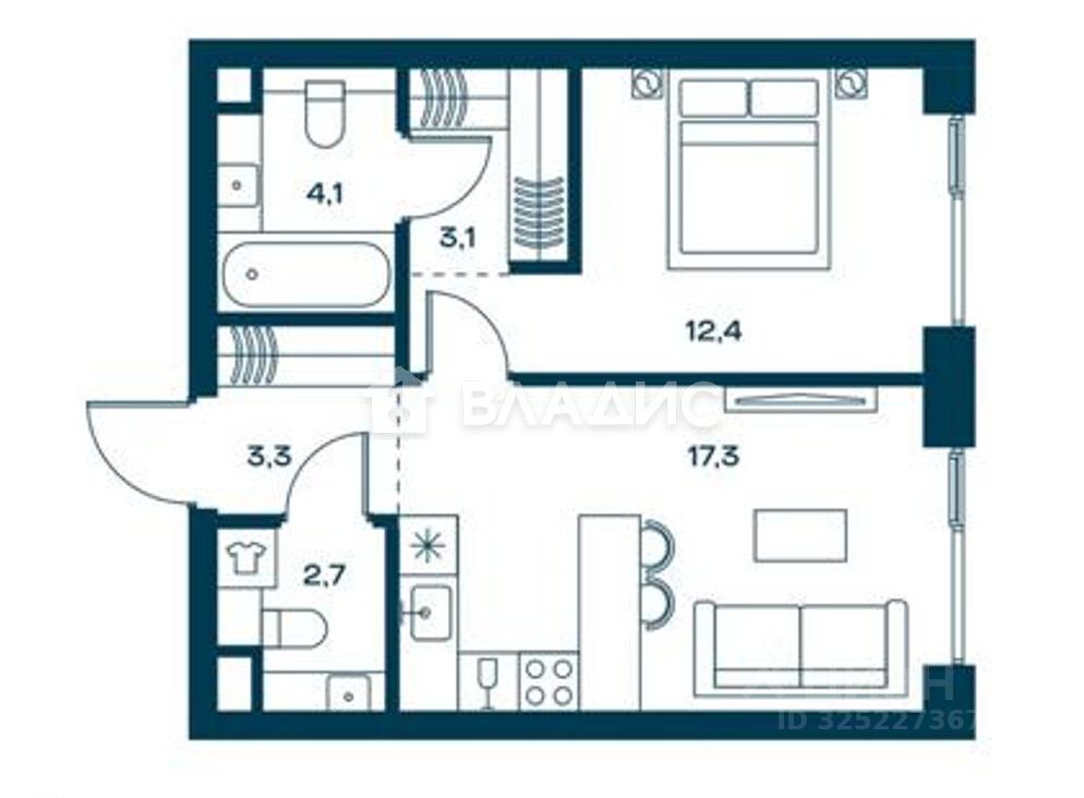 Квартира с отличной и функциональной планировкой - 42,9 кв.м, с панорамными окнами, мастер - спальней, гардеробной. Кухня - гостиная - 17,3 кв.м
