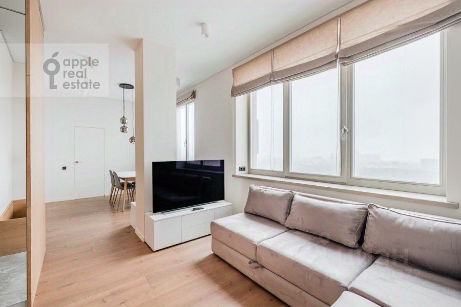 Высокие потолки и большие окна делают квартиру просторной и светлой, а тщательно продуманная инженерия ("тёплый" пол, кондиционеры, "двери скрытого монтажа") делают быт удобным и комфортным. Из окон открывается просто потрясающий вид!