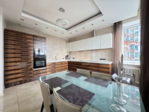 Все из качественных премиальных материалов (венецианская штукатурка на стенах, пол паркет и мрамор, двери из массива дерева). Полностью заменены стеклопакеты на панорамные.