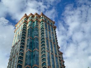 О КВАРТИРЕ. Вид на реку. Высота примерно 7-8 этажа обычного дома (высокий стилобат, лобби и 1й жилой этаж).
