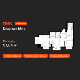 Новостройка! Продается 2-комн. кв-ра площадью 57,64 кв.м, (Корпус 3.4, Секция 4) 6 этаж 32-этажного дома в Квартал Мит от ПИК. "Квартал Мит" строится в экологически чистом районе Митино, где по соседству расположен большой лесопарк, а с двух сторон протекают реки Сходня и Журавка. Для семей с детьми здесь появится школа и два детских сада.