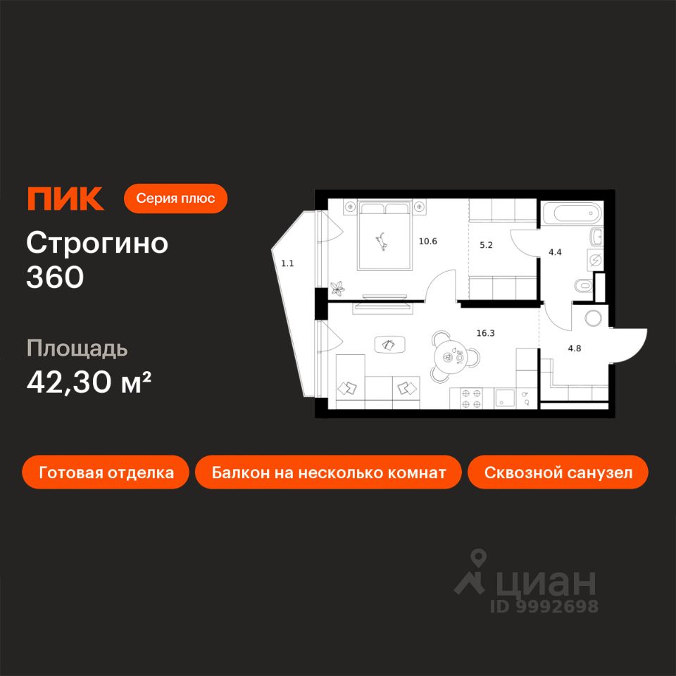 Новостройка! Продается 1-комн. кв-ра площадью 42,3 кв.м, (Корпус 1.2, Секция 1) 7 этаж 30-этажного дома в Строгино 360 от ПИК. Проект, где каждый день будет наполнен гармонией и новыми возможностями, где можно найти идеальный баланс между энергией большого города и спокойствием природного окружения. Это настоящая экосистема в окружении четырех парков и набережной Москвы-реки, где современная архитектура, умные технологии и продуманная среда создают новое качество жизни.