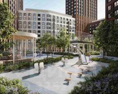 Центральное пространство комплекса — закрытый двор без машин. Он разделён на функциональные зоны: детские игровые комплексы, спортивные площадки, воркаут-зоны и уютные места для тихого отдыха. На первых этажах разместятся магазины, кафе и сервисы, что позволит решать повседневные задачи, не покидая территорию комплекса. Для семей с детьми предусмотрен частный детский сад на 50 мест. Подземный паркинг и кладовые обеспечат удобство хранения и безопасность автомобилей.