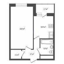 - функциональная планировка: изолированная комната, гардеробная, совмещенный санузел и кухня с лоджией.